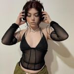 Black Halter Tie Mesh Patch Top-$27